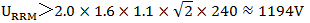 Ufd-min=1.35×UL×cos150°=1.35×240×(-0.866)≈-280V