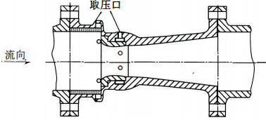 5°,上游取壓口采用角接取壓,其取壓口緊靠入口錐角處,下游取壓口在喉部長(zhǎng)度的一半,即d/4處。