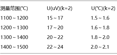表4 一等標(biāo)準(zhǔn)鉑銠30-鉑銠6熱電偶引入的不確定度