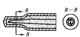 鎧裝熱電偶的測量端有露端型、接殼型、絕緣型及分離式絕緣型等四種,它們的特點見表2.另外,為滿足特殊場合的需要,還有圓變截面型、扁變截面型(圖2)。在通常情況下多采用絕緣型,只有在要求高速響應或處于非腐蝕性氣體中才用露端型。鎧裝熱電偶還有多點結構,如圖3所示