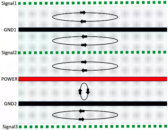 PCB疊層EMC規(guī)劃與設(shè)計思路的核心就是合理規(guī)劃信號回流路徑,盡可能減小信號從單板鏡像層的回流面積,使得磁通對消或最小化。