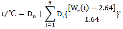 公式中,t為溫度值;Wr(t)為參考函數,在0℃~660.323℃溫區內參考函數Wr(t)的數值表見JJG160-2017標準附錄F;常數C0,Ci,D0,Di在附錄C列出。