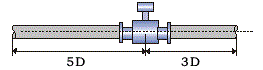4、流量計的前方最少要有5×D(D為流量計內(nèi)徑)長度的直管段,后方最少要有3×D(D為流量計內(nèi)徑)長度的直管段;