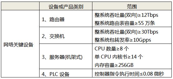 目前,根據(jù)四部門聯(lián)合發(fā)布的公告《網(wǎng)絡(luò)關(guān)鍵設(shè)備和網(wǎng)絡(luò)安全專用產(chǎn)品目錄(第一批)》,第一批網(wǎng)絡(luò)關(guān)鍵設(shè)備包括了性能較高的路由器、交換機(jī)、服務(wù)器和PLC設(shè)備,具體設(shè)備類型及范圍如下表: