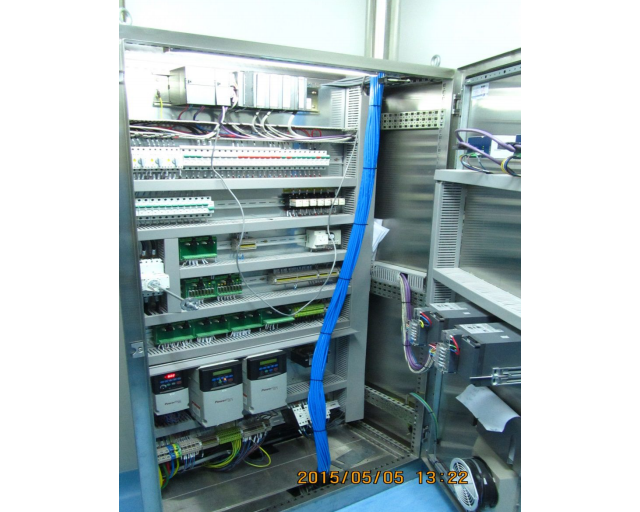 2、24V開關(guān)電源,存在容量選擇偏小,總共10A(CPU,I/O,2塊稱重儀表,2個(gè)無紙記彩色錄儀,2個(gè)TP1200觸摸屏),出線太細(xì)(只有1mm2線徑),負(fù)荷重而傳輸距離遠(yuǎn),導(dǎo)致線阻大壓降大,導(dǎo)致控制柜間的壓差大,遠(yuǎn)端設(shè)備受干擾嚴(yán)重。