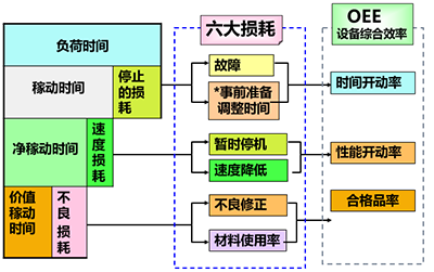 設備的OEE水平不高,是由多種原因造成的,而每一種原因對OEE的影響又可能是大小不同。在分別計算OEE的不同“率”的過程中,可以分別反映出不同類型的損失。
