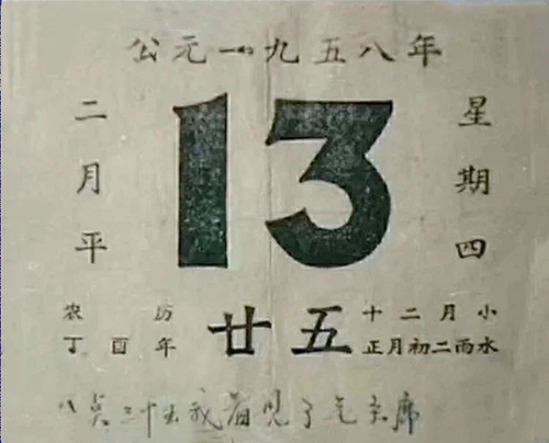主席走后,蘇玉春便把1958年2月13日這一天的日歷撕了下來,寫上了“8點35分,我見到了毛主席”。
