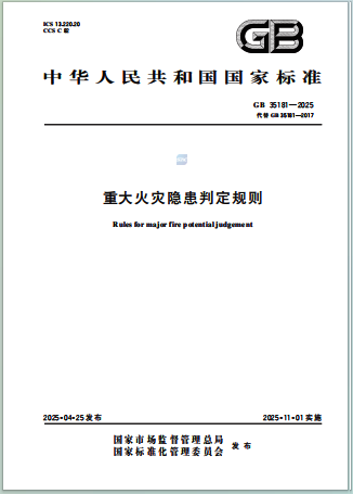 GB35181-2025《重大火災隱患判定規則》是我國消防安全領域的重要技術標準,旨在系統規范重大火災隱患的判定方法,提升火災防控能力。該標準是對GB35181-2017版的重大修訂,結合近年消防技術發展、事故教訓和管理需求,進一步完善了判定規則的科學性和可操作性。以下從修訂過程、主要內容和重要意義三個方面進行詳細闡述。