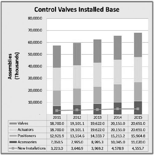 如圖1所示可以看出,控制閥包括閥門附件一直在穩(wěn)定第增長,隨著數(shù)字時代的來臨,在工業(yè)4.0智能制造背景下,如何激發(fā)現(xiàn)有控制閥的潛力,避免無計劃無目的維修成為越來越重要的課題。