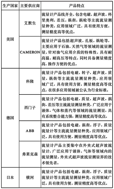 國(guó)外流量計(jì)主要生產(chǎn)商如表5所示。