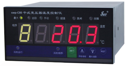 昌暉SWP-C80-T220-D-1-P、SWP-C80-T220-D-2-P、SWP-C80-T380-D-1-P和SWP-C80-T380-D-2-P干式變壓器溫度控制器是保證監測干式變壓器運行的控制裝置。該裝置采用新式設計,結構緊湊、牢固,顯示醒目、直觀,具有更加完善的系統自檢、系統保護、參數保存與輸出指示等功能。