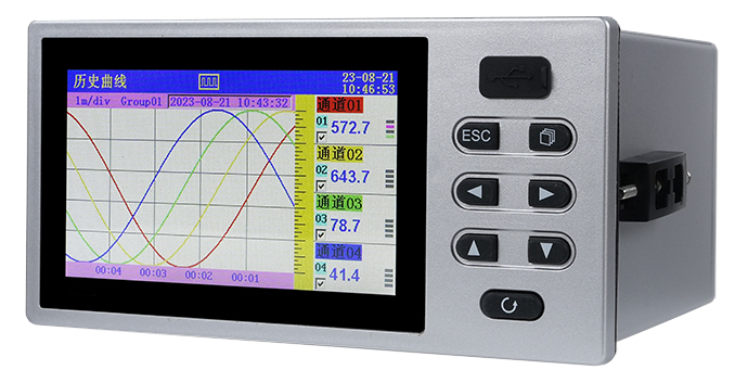 ②變送輸出:YR-ASR100系列彩色無紙記錄儀支持4路通道的4-20mA標(biāo)準(zhǔn)電流變送輸出,負(fù)載能力500Ω