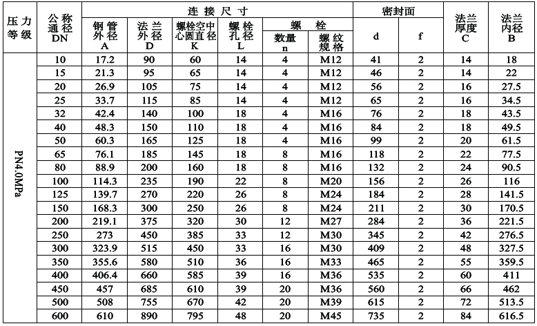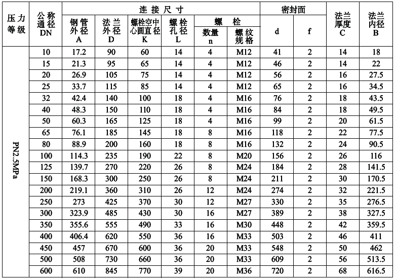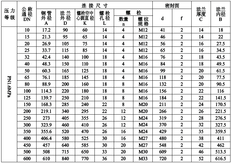PN0.6MPa平面(FF)對焊鋼制管法蘭尺寸