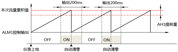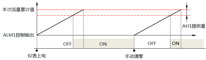 1、流量定量控制儀的第一報(bào)警(AL1)流量定量控制輸出時(shí)序圖