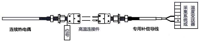 在訂購連續(xù)熱電偶時(shí)還需要配套訂購與連續(xù)熱電偶固定組件、壓板/填料、走線槽、接線盒、專用補(bǔ)償導(dǎo)線和專用溫度變送器/信號(hào)采集器。