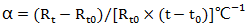 單位溫度變化引起電阻值的相對變化。Pt100元件和熱電阻的電阻溫度系數(shù)用α表示,即: