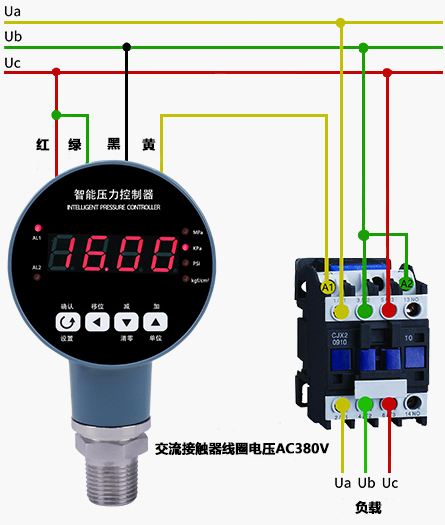 2、AC380V供電,負(fù)載高于700W時(shí)智能壓力控制器的接線