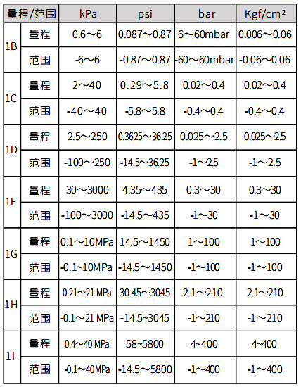 ②YR-ER102-B/C表壓變送器量程和范圍