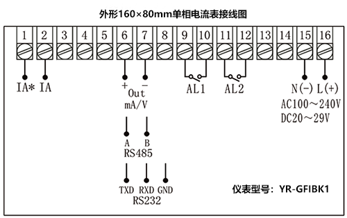 單相電流表型號:YR-GFI-BK1NN-N2-2-T