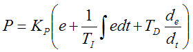 公式中:P為控制器的輸出信號(hào);e為偏差信號(hào);KP、TI、TD分別是控制器的比例增益、積分時(shí)間和微分時(shí)間。