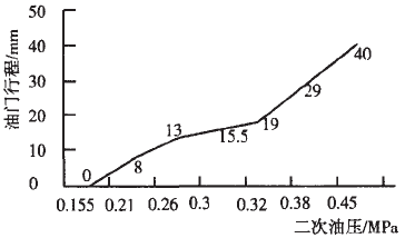圖2  二次油壓與PEAK150輸出電流的線性關系                                          圖3  二次油壓與油門行程的線性關系