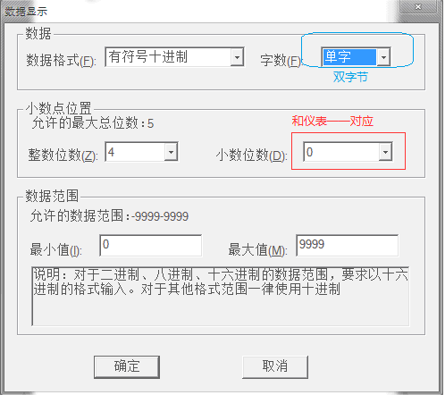 根據儀表地址及數據格式,顯示格式使用有符號十進制,如圖: