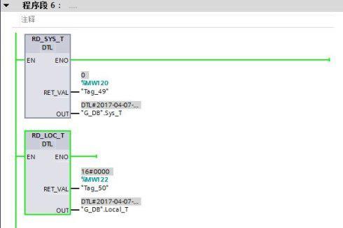 我們可以通過擴(kuò)展指令中的日期和時間中的讀取本地和系統(tǒng)時間指令來查看CPU中的時間時間是否設(shè)置正確。兩個指令分別為:RD_LOC_T(讀取本地時間,即帶時差時間)和RD_SYS_T(讀取系統(tǒng)時間,即UTC時間)。如下圖: