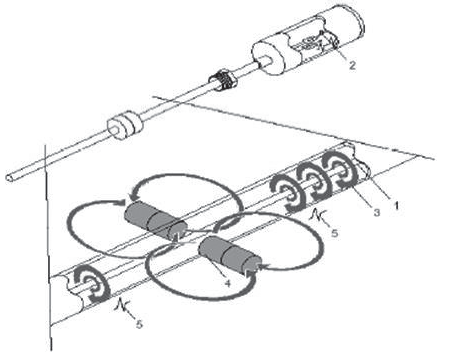 主要是利用磁致伸縮的物理特性進(jìn)行測(cè)量,不受介質(zhì)的介電常數(shù)、溫度或壓力變化的影響。如圖1所示,在非磁性傳感管的內(nèi)部有一根拉緊的磁致伸縮線1,電路單元沿磁致伸縮線發(fā)射電流脈沖2,從而在磁致伸縮線周圍產(chǎn)生一個(gè)環(huán)形的磁場(chǎng)3,液位浮子內(nèi)有一組永久磁鋼4,它們本身的磁場(chǎng)使磁致伸縮線沿軸向磁化。當(dāng)電流磁場(chǎng)和磁鐵磁場(chǎng)疊加,浮子位置的磁致伸縮伸縮線將產(chǎn)生一個(gè)瞬時(shí)扭力5,同時(shí)產(chǎn)生返回脈沖,該脈沖沿磁致伸縮線向兩端傳送,一端傳向傳感管的頂端,另一端傳向傳感管的底部。其中向頂端返回的脈沖波會(huì)被變送器電子單元所接收。由于脈沖波的傳播速度是恒定值,電子單元只需通過起始脈沖和返回脈沖的時(shí)間差就可以計(jì)算出浮子中磁鋼的位置,從而得到精確的液位。