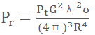 .............................公式②說明:公式中Pr為雷達(dá)接收到的目標(biāo)反射功率,dBm;Pt為雷達(dá)發(fā)射功率,dBm;G為天線增益,dB;λ為雷達(dá)波長,m;σ為目標(biāo)的散射截面積,m2