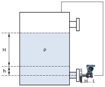 b、在高溫下,如圖2b,在變送器與取壓管中間加裝隔離罐,以避免高溫對變送器的損壞。注意,這時所選用的隔離液為在此溫度下不沸騰的介質。變送器的量程不變,零點遷移量為:L0=h1×ρ1+h×ρ-h0×ρ0。