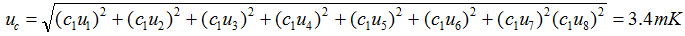 b、確定擴展不確定度確定擴展不確定度U=kuc,取k=2,U=6.8mK。