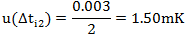 上級證書給出,檢定0℃時,測溫儀的不確定度區間半寬為0.003℃,k=2。則