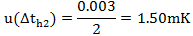 D、自熱引入的標準不確定度。電測設備供感溫元件的測量電流為1mA,根據實際經驗感溫元件一般有約2mΩ的影響,可作為均勻分布處理,。則: