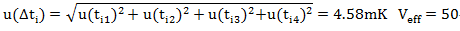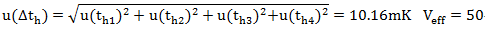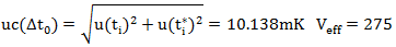 由于各不確定度分量之間相互獨立。因此,不確定度合成為檢定0℃時,