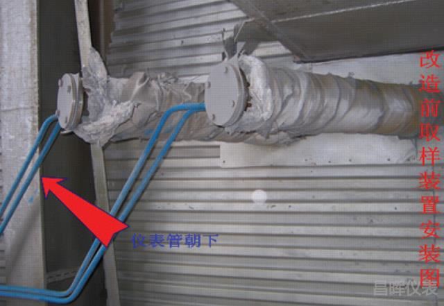 由于爐膛壓力取樣母管后端蓋法蘭密封不嚴(yán),導(dǎo)致取樣母管后端蓋漏氣,內(nèi)外溫差的作用下,取樣母管內(nèi)后端易產(chǎn)生結(jié)露現(xiàn)象,與積灰混合產(chǎn)生泥漿,堵塞取樣母管。我們對(duì)取樣母管后端蓋法蘭增加橡膠密封墊,增強(qiáng)取樣母管密封性,并對(duì)取樣母管進(jìn)行外部保溫,減小溫差。保證取樣管路暢通。