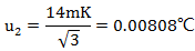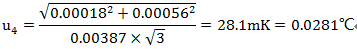 采用B類方法評定。二等標準鉑電阻的穩定性,查檢定規程為14mK,按均勻分布,可得: