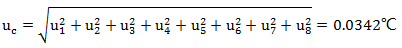 以上各分量獨立不相關,按方和根得合成標準不確定度: