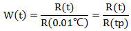 實際測溫中首先測得溫度計的電阻值Rt,通過證書給出的Rtp計算出電阻比,把W(t)代入公式(2)能計算出Wr(t), 再把Wr(t)