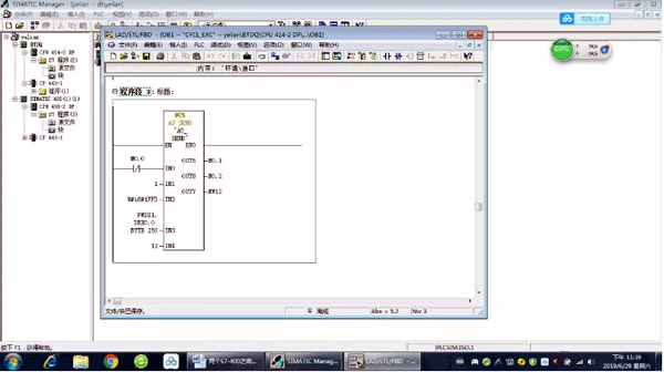 在另一個S7-400站點中,采用同樣的方法添加相應的模塊,并在OB1中調用FC6