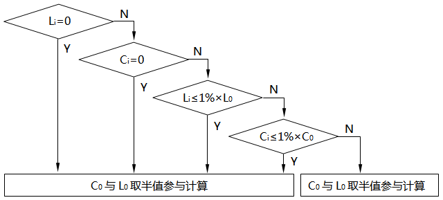 圖4 混合回路本安回路計(jì)算邏輯(圖注:Li=Li1+Li2;Ci=Ci1+Ci2)