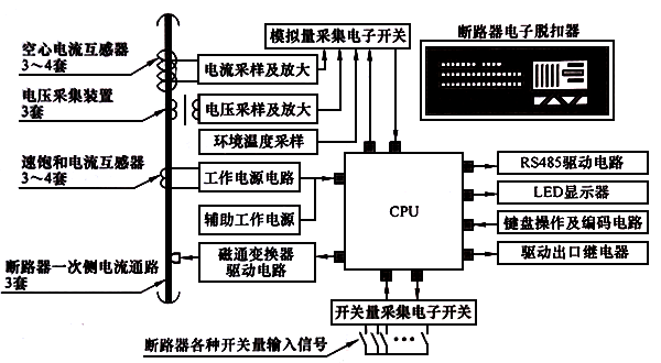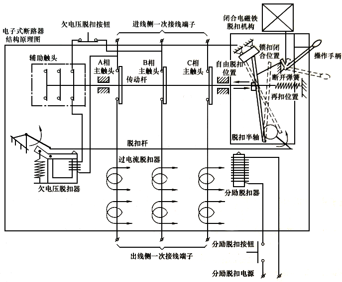 圖2 帶電子式脫扣器的斷路器結(jié)構(gòu)原理圖