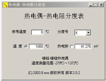 K型熱電偶分度表S型熱電偶分度表。另外,本站還提供僅73k的“熱電偶-熱電阻分度軟件”供大家免費使用。該軟件不用安裝,是儀表技術人員必備工具軟件。