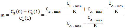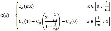 為求取分程點,令公式(2)中函數C(x)在1/m處的左導數等于右導數,則有: