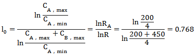 實際上,公式(9)中分子CA(1)為閥門A最大流量,CA(0)為閥門A最小可控流量,其比值實際為閥門A的可調比RA。同理,分母CA(1)+CB(1)為并聯管路最大流量,也即為閥門A和閥門B的最大流量之和,CA(0)為閥門A最小可控流量,其比值實際為并聯管路期望特性流量的可調比R,因此,公式(9)可進一步簡化為: