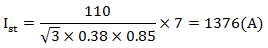 ①計(jì)算電機(jī)啟動(dòng)時(shí)整體負(fù)載功率因數(shù):電動(dòng)機(jī)啟動(dòng)時(shí)功率因數(shù)極低,有論文經(jīng)過計(jì)算給出了0.22的數(shù)值,另外查詢ABB提供的資料也可以驗(yàn)證這一點(diǎn)。故此我們可以考慮電動(dòng)機(jī)啟動(dòng)時(shí)功率因數(shù)取值為0.2,此時(shí)在本案中電機(jī)啟動(dòng)電流為