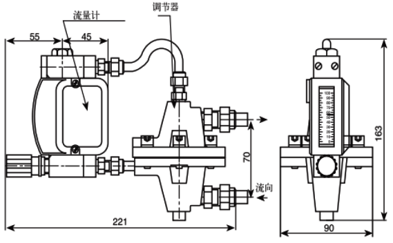 配置金屬管浮子流量計(jì)/恒定出口壓力恒流閥的吹掃裝置外形尺寸