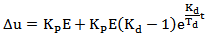 公式中E為階躍輸入的變化幅度;這里的e和前面的意義不一樣,不是偏差,而是一個常數(shù),約等于2.718;Kd為微分增益;Td為微分時間。