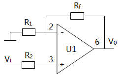 從式中可看出改變反饋電阻Rf的阻值,就可改變同相運算放大器的增益。