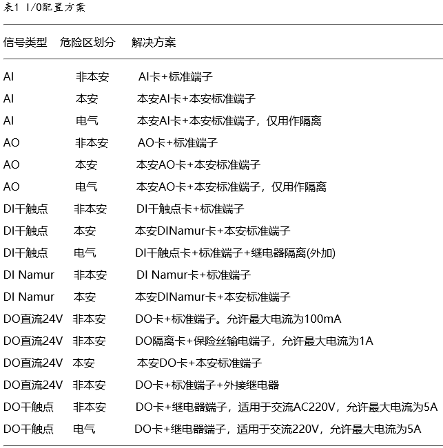 不同的信號類型通過不同的CHARM插槽配合不同的CHARM模塊來解決。不同的信號類型,有不同的解決方案,該裝置的I/O配置方案見表1所列。