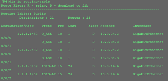 可以看到,在AR4上對于學習1.1.1.1/32和1.1.1.2/32路由的協議改變成了ISIS,這顯然會存在問題。